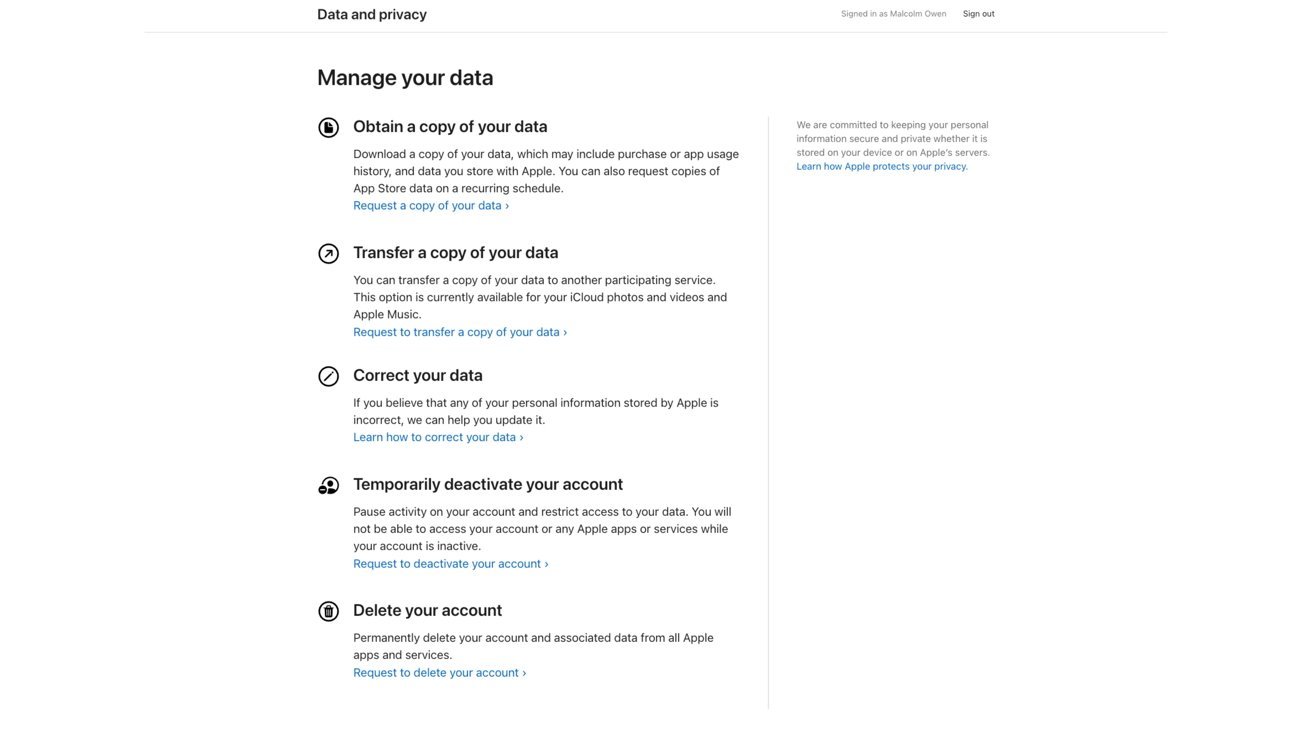 由于 Apple 在用户隐私方面有良好的记录,删除 Apple 账户相当容易完成。就像可以请求获取其存档中关于您账户的所有数据一样。