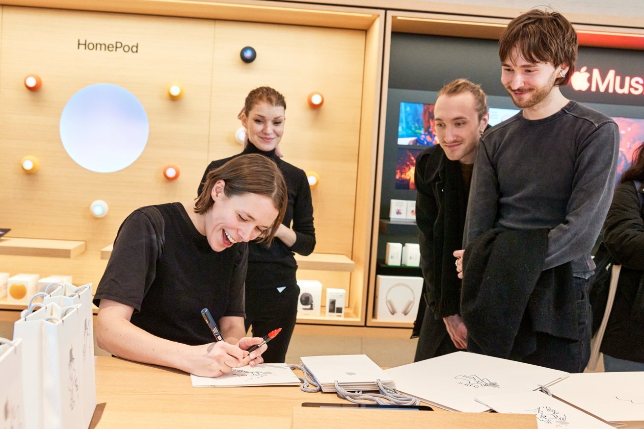 插画家Catherine Potvin为开业日购物袋签名 – 图片来源:Apple